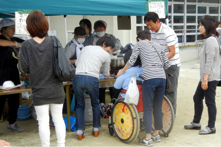 八幡市内で活動する障害者支援施設が中心となって運営する「すまいるやわた2016」は、10月19日(日)に八幡市立中央小学校で開催され、校庭や体育館で行われるブラスバンドや和太鼓など、多くの出演者によって会場が盛り上がりを見せる中、八幡ルネも模擬店を出して「きつねうどん」を販売しました。10時の開場とともに「きつねうどん」は順調な売れ行きで、ピークを迎える頃には追加の材料仕入れが間に合わず、予約待ちをする方もあって、約200食が胃袋へ、来られた方は「胃?は満足じゃ~!」と言われたかどうか 有り難う御座いました。 スタッフ一同