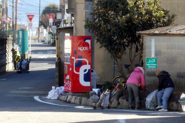 先週実施した八幡園内の脇道の清掃に引き続き、1月14日(土)は八幡五反田周辺の脇道清掃を行うべく、八幡ルネの事務所を出発したボランティアは八幡高畑から西の八幡五反田方向へ、土嚢袋や掃除道具を備えたカートを引きながら路上を清掃、この日も自動販売機横の雑草が目立ち、3名がカートを止めて雑草処理を開始、少し後方では道路脇の土砂を回収する作業が行われ、このように処理した雑草や土砂などは、カートに取り付けた土嚢袋に詰め、所定の場所へ移動して軽トラックで回収、この日は7名のボランティアで38袋を回収しました。