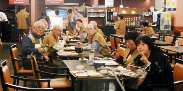 2月7日(火)参加者10名を乗せたバスは八条口を8時30分に出発し、14時過ぎ「ホテル千畳」に到着、温泉で疲れを癒し卓球や将棋などを楽しみ、夕刻から全員集合でバイキング料理を充分に満喫した後は部屋に戻ってワイワイガヤガヤ、八幡ルネが企画した明日の観光内容を確認して就寝となりました。 翌午前4時、八幡ルネ代表はカートを引いてホテルを出発、今回もホテル周辺の清掃に励んでいました。