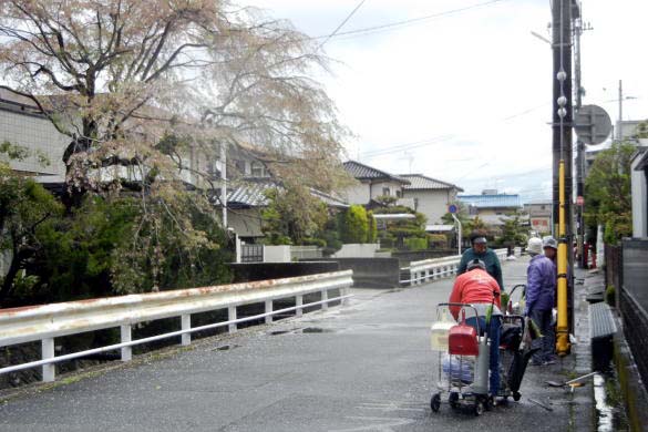 4月9日(日)、前日の八幡園内の清掃作業に続き、この日は八幡三本橋から八幡五反田の脇道(住宅街)を清掃、1週間前の大谷川では桜の開花が皆無に近い状態だったが、今日は住宅街の桜が見事に開花、前日の雨で濡れた桜の横で、道路脇に生えた雑草の処理をしたり、側溝の蓋(グレーチング)を外して側溝の中の清掃をしたり、回収した雑草や土砂などは土嚢袋に詰め、路上の適所に集めて軽トラックで回収、この日に参加したボランティア10名で回収したゴミなどは、土嚢袋にして59袋になりました。