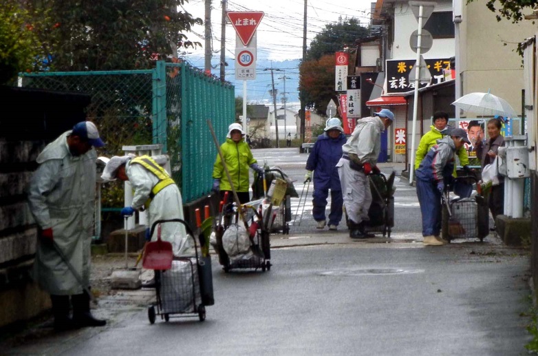 このため、29日は道路清掃に切り替え、雨の中をボランティア8名は、八幡五反田方面に向かって清掃を行い、土嚢袋82袋のゴミなどを回収しましたが、10月の空は清掃活動の予定と事務局便りの編集を狂わせる「お天気屋さん」のようでした。
