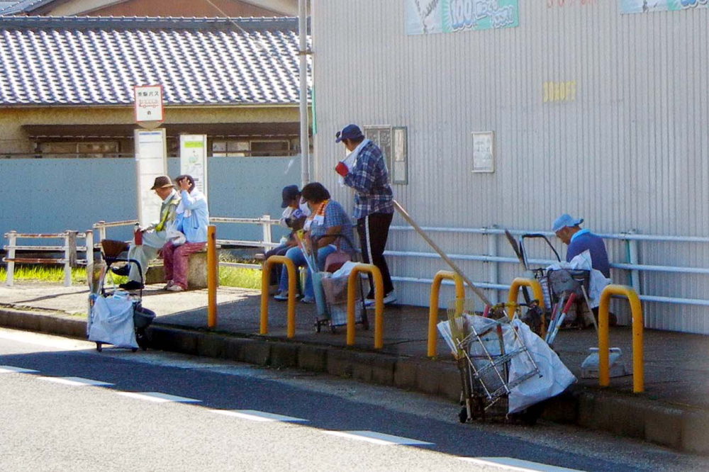 10月8日(日) 府道八幡木津線は道路端に土砂が多く堆積する傾向にあり、この日も定例の作業を8名のボランティアで開始し、午前10時を過ぎた頃に「森」のバス停付近で休憩をしました。