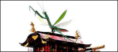 八幡市にある正平塚古墳(八幡中ノ山)は、祇園祭の蟷螂山や石清水八幡宮と深い関係にあって、蟷螂山にはカマキリが、石清水八幡宮本殿の瑞垣にはカマキリの彫刻が施されています。