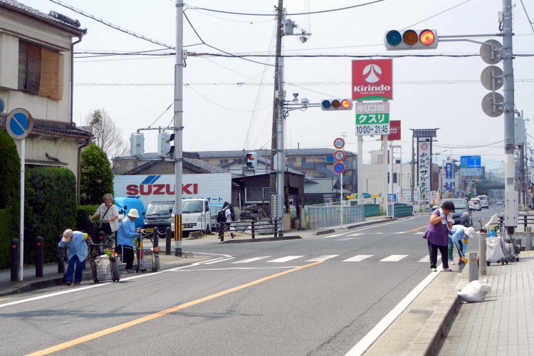 この日は、市役所横の道路から長尾八幡線に出て、長尾八幡線の道路や歩道の清掃をしながら北上、旦所交差点で暫し休憩して八幡千束まで清掃を行いました。