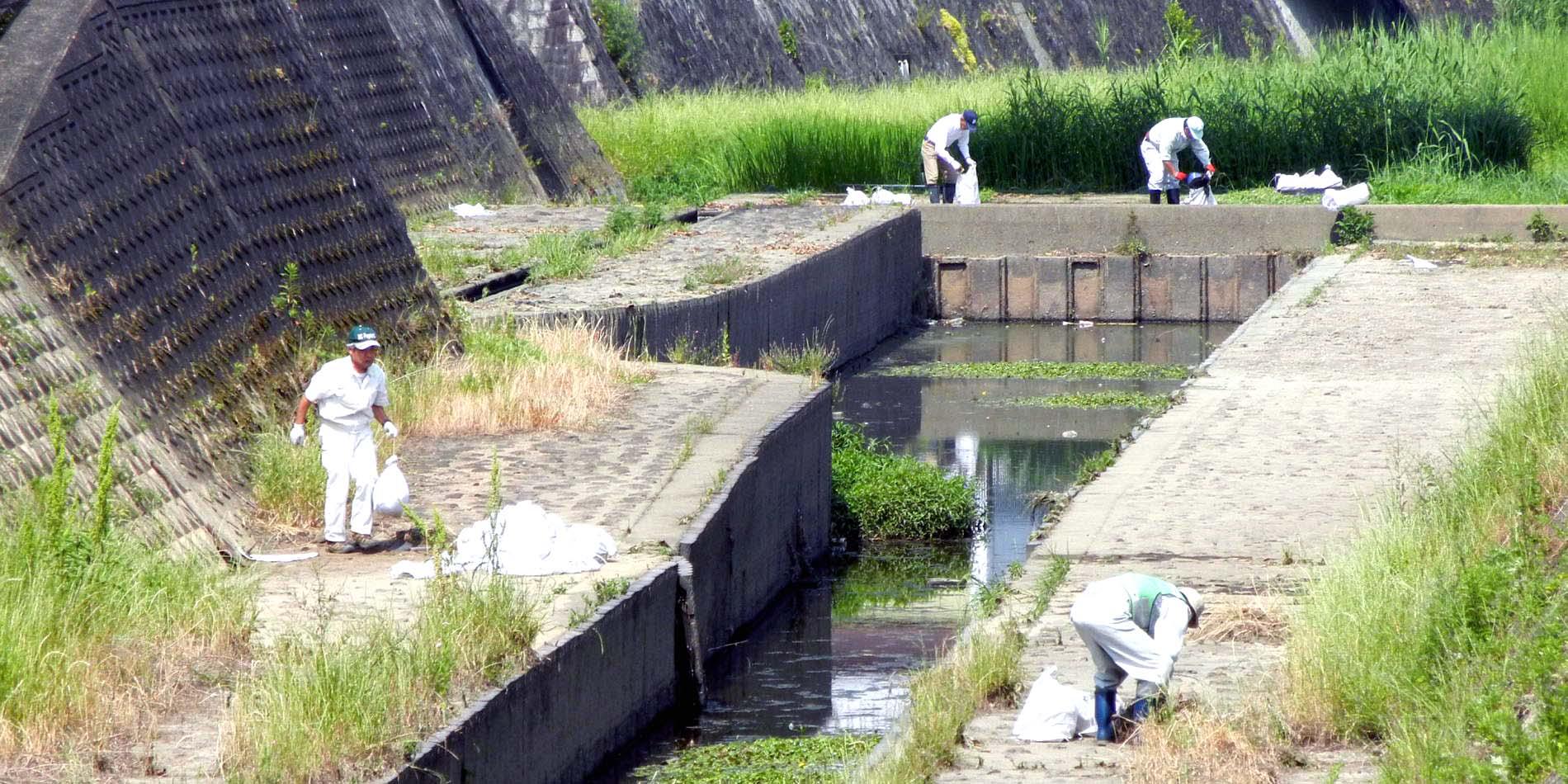 5月26日(日)の山路大谷川の定例清掃は、5月5日の清掃と同様に河川敷に堆積した土砂や雑草などを手分けして土砂とともに取り除き、土嚢袋に詰め込む作業が行われましたが、足腰などの痛みを訴えるボランティアが、土砂や雑草などを詰めた重い土嚢袋を、河川敷より回収車両が通行できる堤防まで運ぶ作業には限界があり、電動昇降機の復活による作業改善が必要との意見がありました。