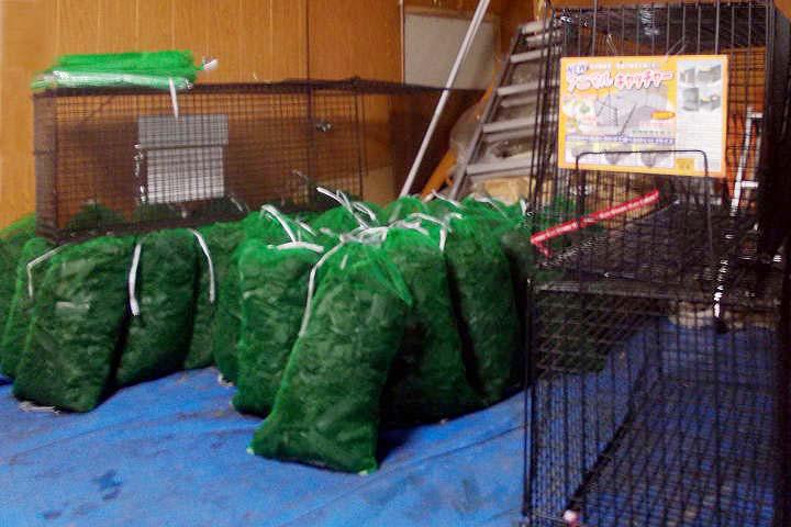 旧大谷川における「竹炭による水質浄化実験」に備え、1月28日には旧大久保邸に保管している竹炭を「野菜ネット」(10Kg用)への詰め込む作業が行われ、30袋の積み込みが終了した。