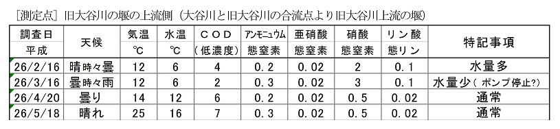 旧大谷川での定期的水質調査 単位:0.1mg/L 調査方法:川の水調査セット(共立理化学研究所)