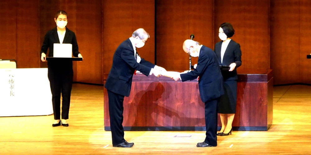 ▲ 11月1日 表彰状贈呈 (八幡市文化センター)