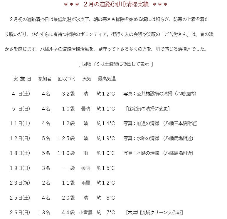 *** 2月の道路(河川)清掃実績 ***