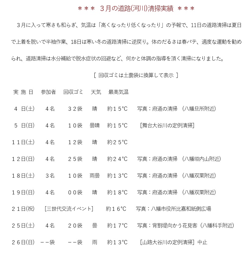 ▲ 3月18日(日) 雨の府道清掃 (八幡双栗付近)