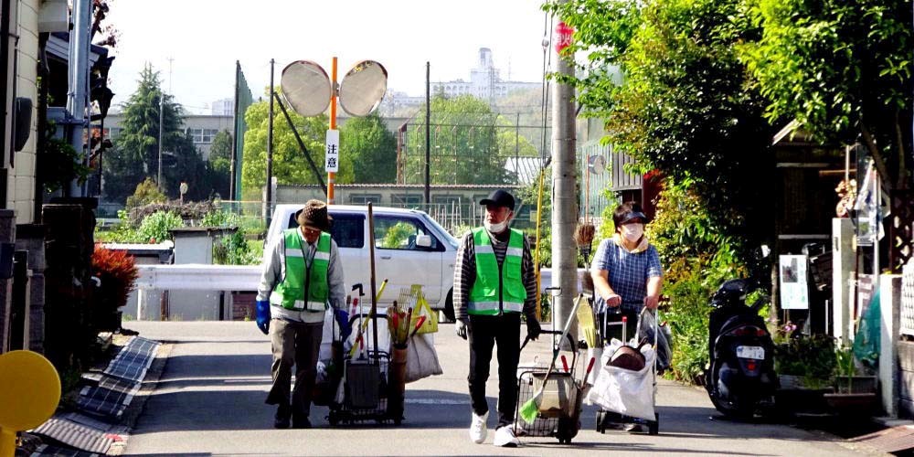 ▲ 4月22日(土) 新メンバーと清掃開始(八幡ルネ事務所前)