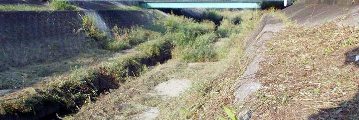 8月17日(日)、前日の雨で水量が多い状態であったが、河川敷の冠水も引いて通常作業が行われた。この日も草刈り機がフル稼働、河川敷や天端のフェンス付近に生い茂る草木を切り倒して景観も多少良くなりましたが(写真上部)、まだ先には情け容赦なく生い茂った草木(写真下部)が待ち構えており、草刈り機による雑草との戦いは当分続きそうで、草木の繁茂を抑える対策を考えなければ、ボランティアの苦労は軽減することはなく、草木の繁茂を抑える良いアイディアがありましたら、ご提供を下さいますようお願い申し上げますとともに、定例清掃へのご参加をお待ちしております。