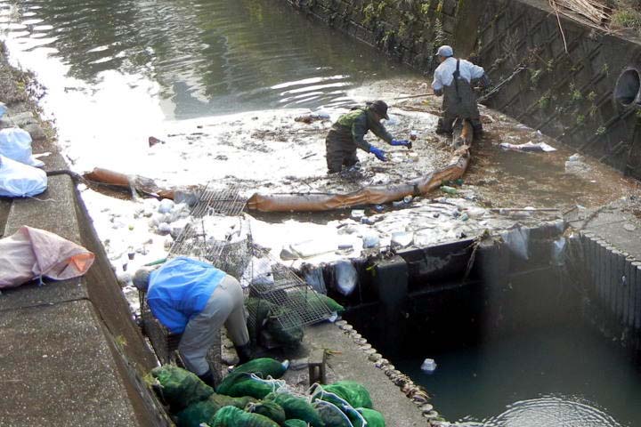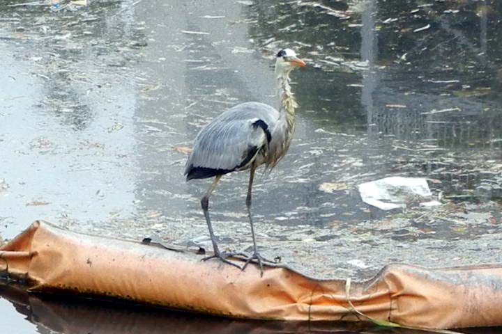 今後、水質検査は毎週日曜日に行う予定で、検査予定日の12月28日(日)には「大谷川の鷺」の出迎えがありましたが、ゴミフェンスには一週間前と変わらぬゴミが流れ着いていました。 ボランティアの清掃参加をお待ちしています
