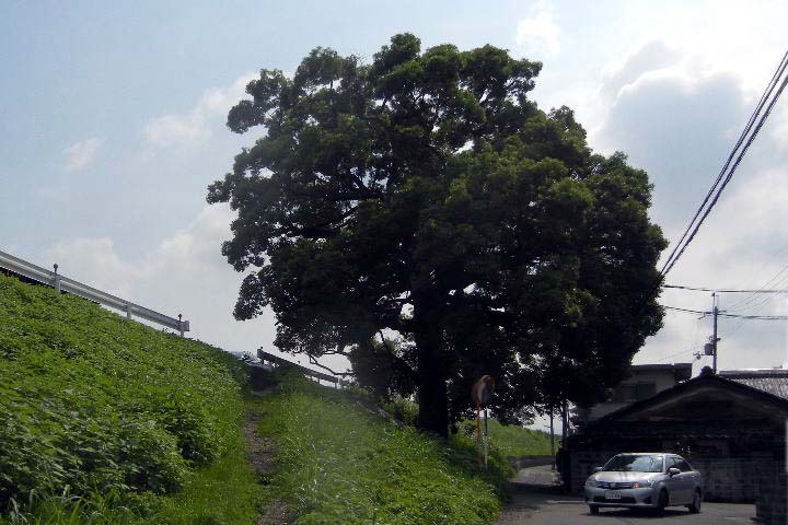 この堤防は一昨年の台風で一部が崩落し、堤防の補強工事で連続壁が施工されていたが、「楠」の手前で連続壁の工事はストップ、6月16日~10月15日(出水期)は、定めにより河川工事が行えず、工事が行われるのは10月15日を過ぎた「非出水期」と思われるが、1000年をも八幡を見つめ続けた「楠」を、法面設計の技術的都合や伐採と温存の費用比較等で、情け容赦なく見捨てられるとすれば忍びなく、工事再開可能日まで約3ヶ月、官民双方の知恵を絞って悔いのない結論に至ることを願うばかりです。