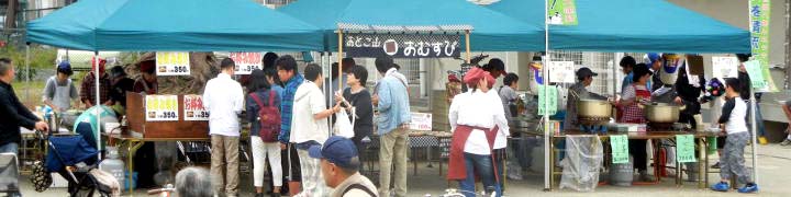 10月11日(日)、中央小学校では「さまざまな障害を持ち八幡で働く方々と、地域の方々が交流する楽しいお祭り「すまいるやわた2015」が開催され、体育館のステージでは「和太鼓」や「よさこい」など、校庭には多くの模擬店などが並ぶ中で、八幡ルネは「きつねうどん」で出店しました。