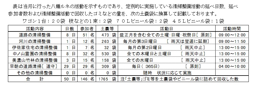 2月の清掃整備活動実績