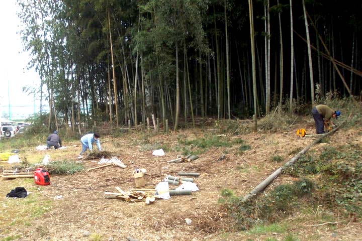 3月16日(水)は、美濃山竹林の定例清掃日、今日も放置された竹や雑草などの処理を行い、切り倒した竹は所定の寸法に切断するなど、お決まりの清掃活動を行いました。